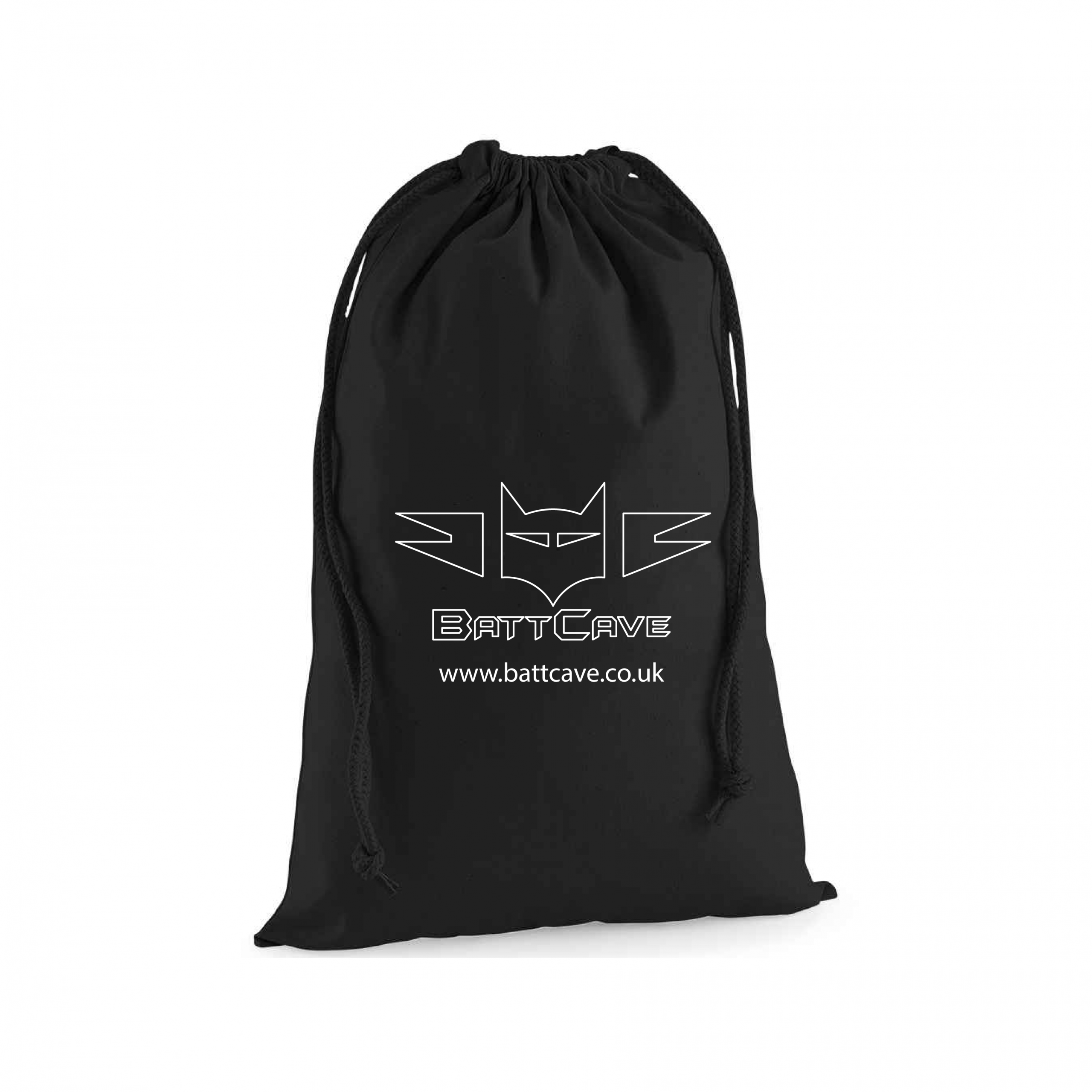 This small black car bag comes with the BattCave logo printed on it. The logo is printed in white.