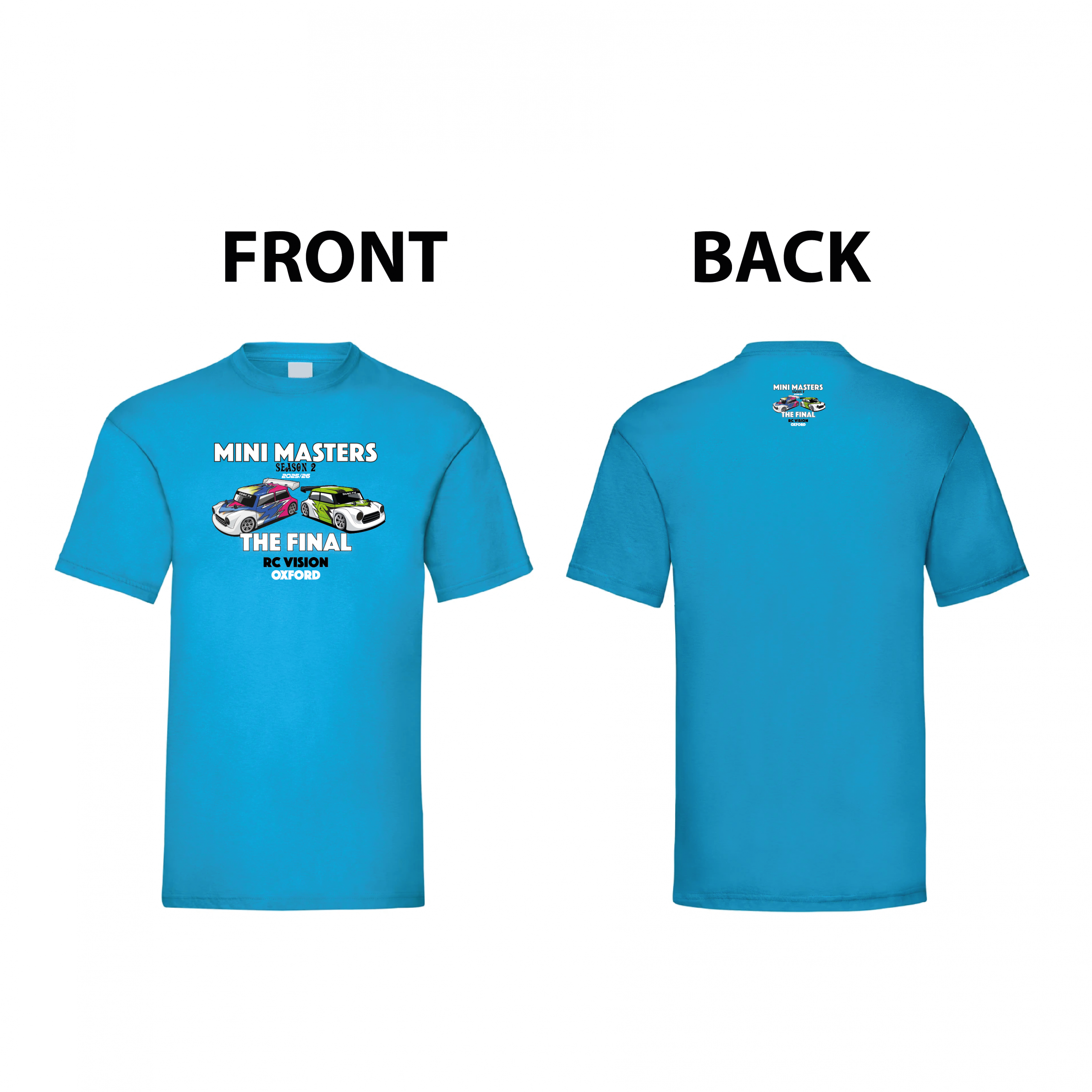This great quality comfortable blue adult t-shirt has Mini Masters Season 2 Final design printed on the chest and back.