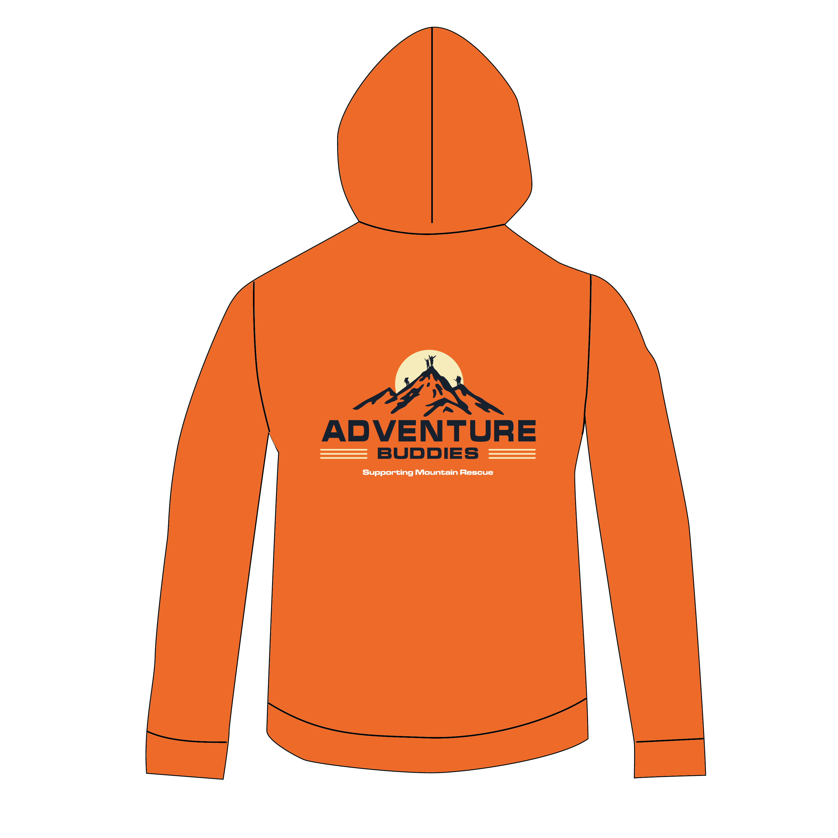 The hooded sweatshirt is great quality and has a small Adventure Buddies logo printed on the front and a larger Adventure Buddies design printed on the back. The hoodie is available in a variety of colours.